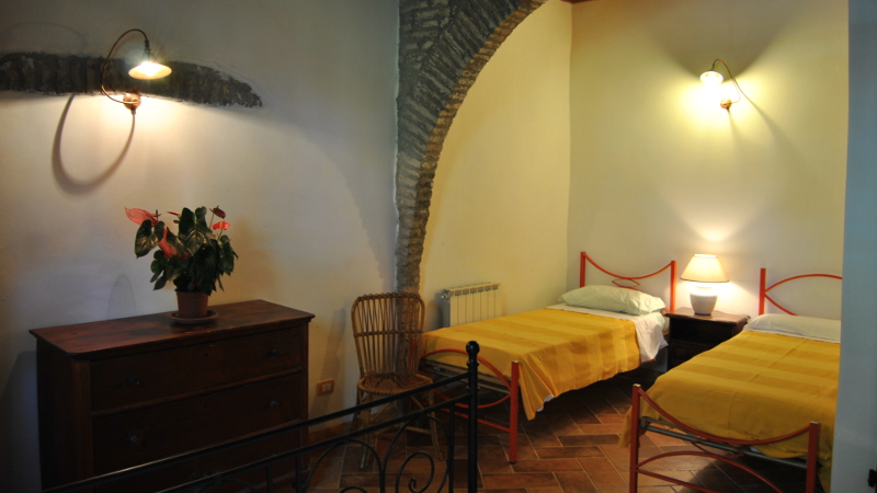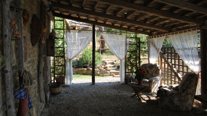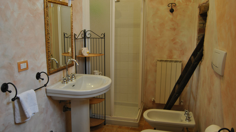 The apartment Fienile, on the ground floor offers accommodation for 5 (+2) people. It has 2 bedrooms, each with a double bed and a lounge with a bed. An extra bed can be provided and placed in one of the bedrooms. It also offers a shower room, WC and bidet, there is also a hairdryer for your use. There is a kitchen equipped with a gas cooker with 4 hobs and oven and a fridge with a freezer. There is a basic supply of kitchen utensils and cutlery, crockery, pots and pans. Bedding and towels will be provided. There is a tv supplied. The pergola is exclusive to the guests of this apartment and offers shade and a pleasant spot to spend an evening. There is a parking spot close to the house. Breakfast can be ordered if required.